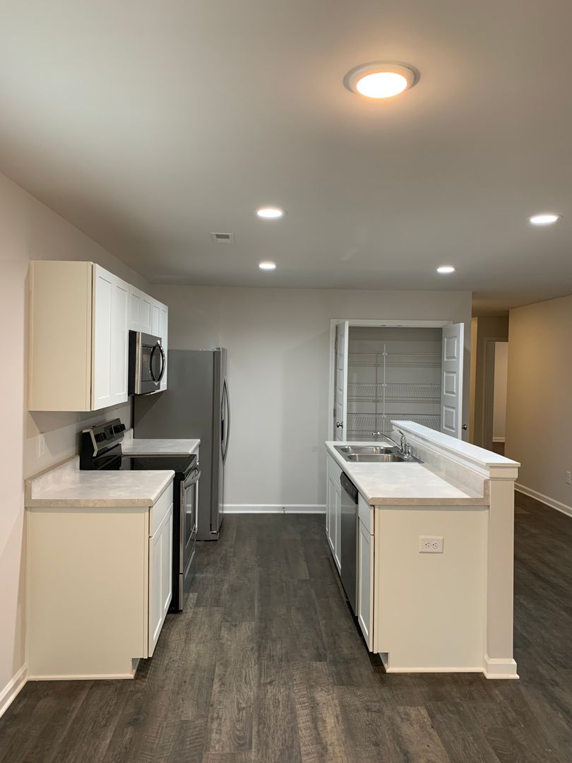 The fully equipped kitchen features stainless steel appliances, generous counter space, and a dedicated pantry closet, giving you everything you need to cook, host, and stay organized.