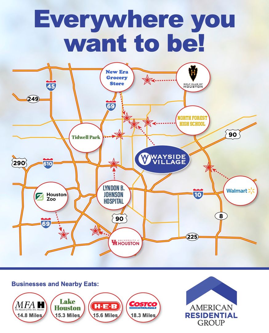 Wayside Village is part of the Houston School District and is conveniently located just minutes from I-69, near Navasota St and Wayside Dr—giving you easy access to shopping, dining, and everyday essentials.
