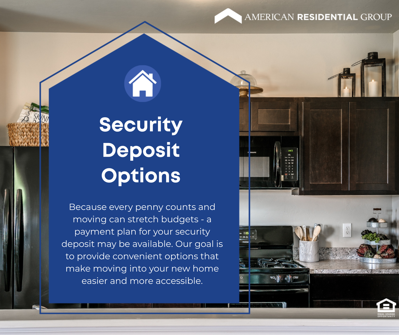 Security deposit payment plans are available. Our goal is to provide convenient options that make moving into your new home easier and more accessible